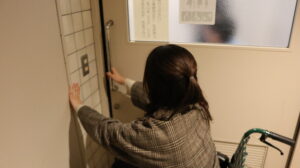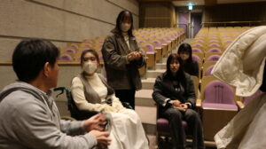 きっかけは、施設から「もっと使いやすいホールにしたい」という相談でした。障害者相談支援センターの高橋宣夫さんと連携し、ゼミ生を中心に有志4名が参加しました。4名は前期に「社会環境ケア論」やゼミでバリアフリーやユニバーサルデザインを学び、ディズニーリゾートでの現地調査も経験しています。今回の活動は、その学びを地域で実践する絶好の機会となりました。