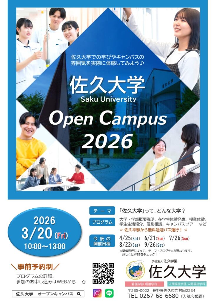 佐久大学はどんな雰囲気のところか、新しい学年がスタートする前に、ぜひ見に来てください。